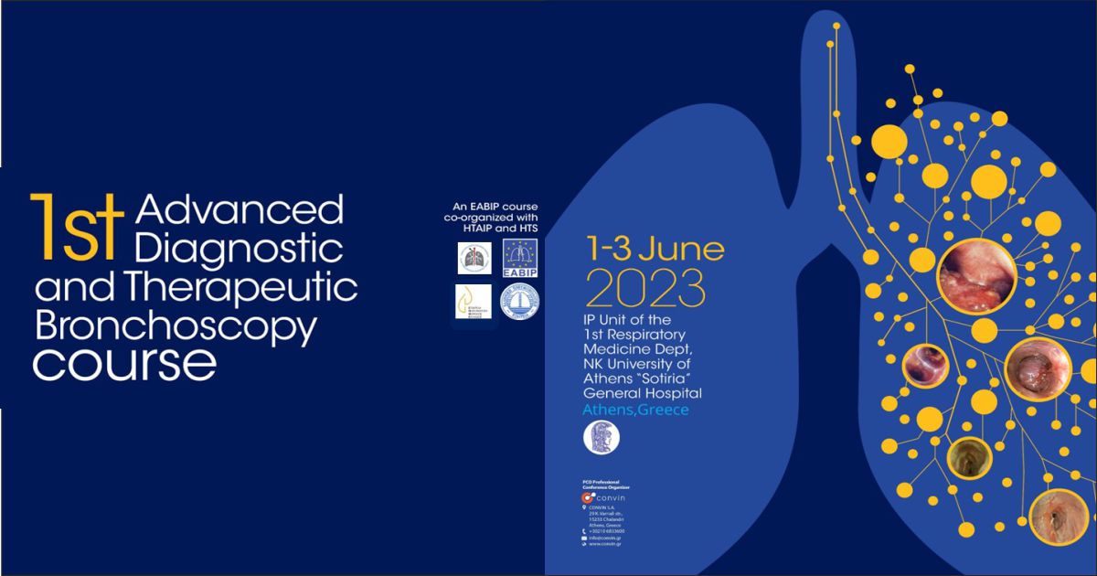 Η Ευρωπαϊκή Εταιρεία Βρογχολογίας και Επεμβατικής Πνευμονολογίας (EABIP) και η Εταιρεία Εκπαίδευσης στην Επεμβατική Πνευμονολογία (HTA-IP) συνδιοργανώνουν διεθνές, τριήμερο, υβριδικό σεμινάριο στις 1-3 Ιουνίου 2023, το οποίο απευθύνεται σε πνευμονολόγους ήδη έμπειρους στη συμβατική βρογχοσκόπηση, που θέλουν να αποκτήσουν ευρύτερη εμπειρία με την προηγμένη επεμβατική διαγνωστική και θεραπευτική βρογχοσκόπηση.