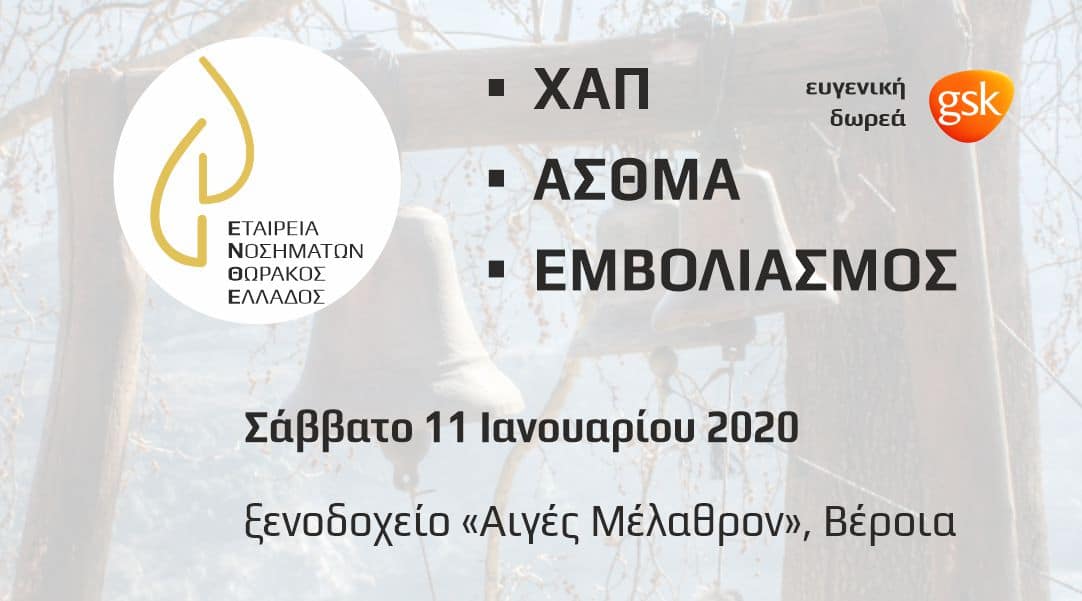 Ολοκληρώθηκε με τεράστια επιτυχία η πρώτη για το νέο έτος ημερίδα που διοργάνωσε η ΕΝΘΕ και είχε ως αντικείμενα τη Χρόνια Αποφρακτική Πνευμονοπάθεια, το Άσθμα και τον Εμβολιασμό. Πραγματοποιήθηκε το Σάββατο 11η Ιανουαρίου 2020, στο Ξενοδοχείο “Αιγές Μέλαθρον”, στη Βέροια.