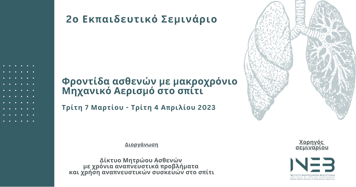 Πρόσκληση συμμετοχής στο 2ο εκπαιδευτικό σεμινάριο με θέμα: «Φροντίδα ασθενών με μακροχρόνιο Μηχανικό Αερισμό στο σπίτι»