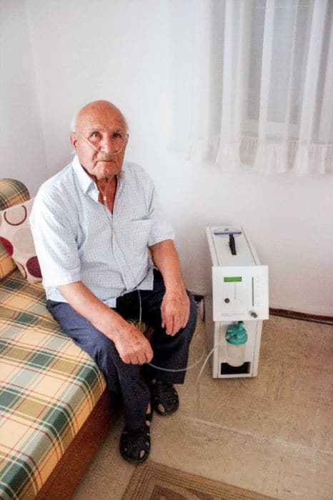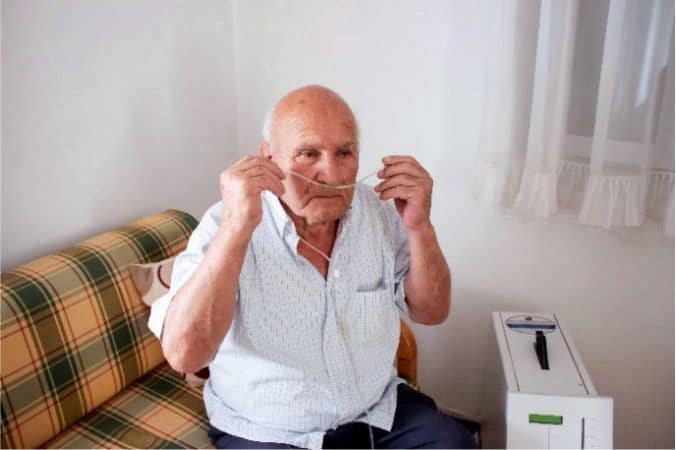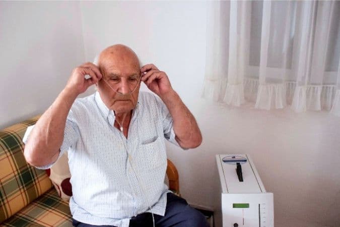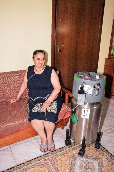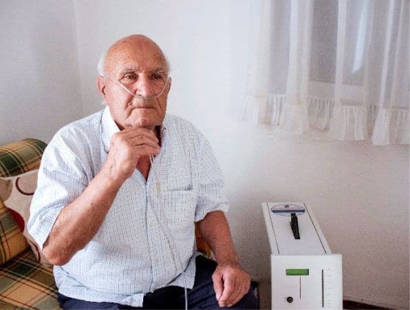 Ασθενής που χρησιμοποιεί ηλεκτρικό συμπυκνωτή για την οξυγονοθεραπεία του