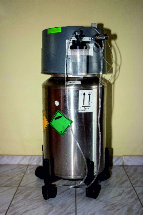 Ένα μικρό και ελαφρύ μονωμένο δοχείο μπορεί να γεμίσει με υγρό οξυγόνο από τη δεξαμενή και να χρησιμοποιηθεί σαν φορητή «πηγή» οξυγόνου, επιτρέποντας έτσι στον ασθενή να μετακινείται έξω από το σπίτι.
