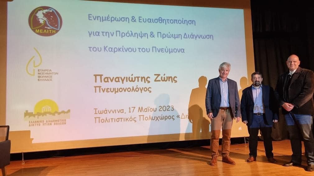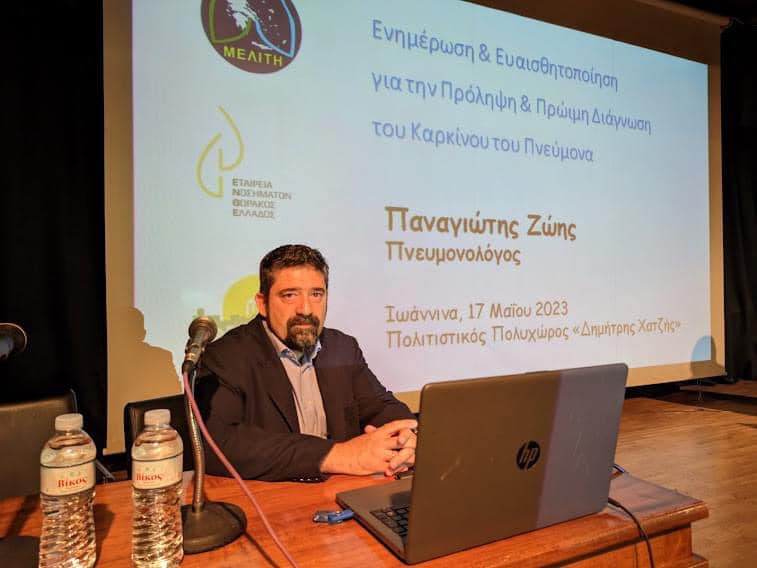Στις 17/05/2023, πραγματοποιήθηκε στον Δήμο Ιωαννιτών, το Πρόγραμμα Ενημέρωσης – Ευαισθητοποίησης για την Έγκαιρη Διάγνωση του Καρκίνου του Πνεύμονα «Μελίτη» με ομιλητή τον Πνευμονολόγο -Φυματιολόγο κ. Παναγιώτη Ζώη.