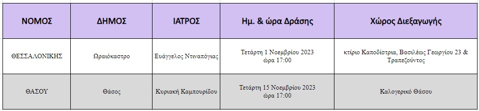 Το αναλυτικό πρόγραμμα για τον μήνα Νοέμβριο έχει ως εξής:
