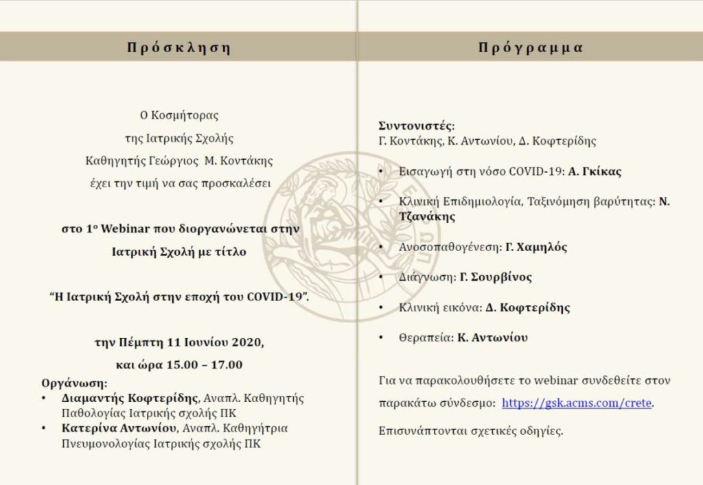 Webinars Ιατρικής Σχολής του Πανεπιστημίου Κρήτης